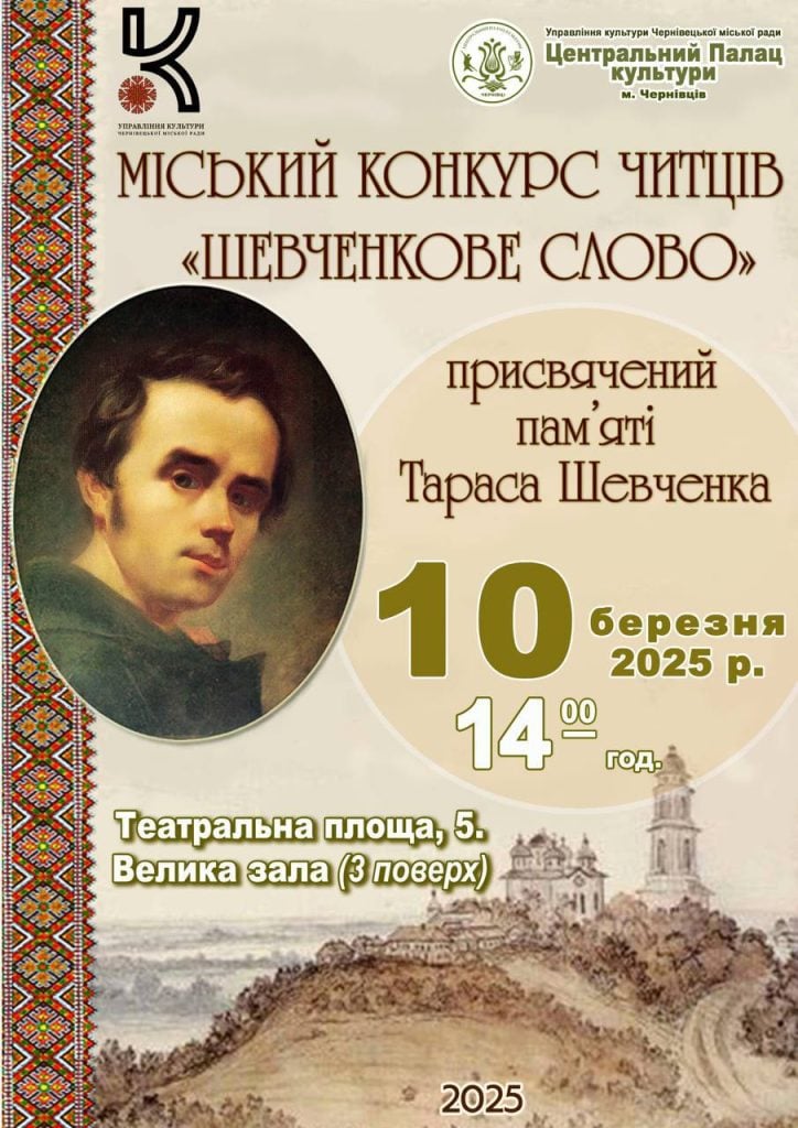 У Чернівцях відбудеться міський конкурс читців «Шевченкове слово».