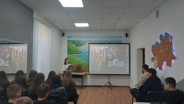 З метою сприяння зміцненню патріотичного духу серед підростаючого покоління учням продемонстрували повчальні відео про добровольців, присвячені історії боротьби українського народу за збереження державного суверенітету і територіальної цілісності України.