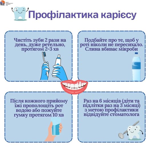 Для профілактики карієсу слід дотримуватися рекомендацій:
