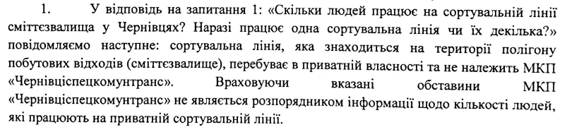 Приватна сортувальна лінія на сміттєзвалищі не є у власності МКП «Чернівціспецкомунтранс». Хто там працює, у комунальному підприємстві не відають.
