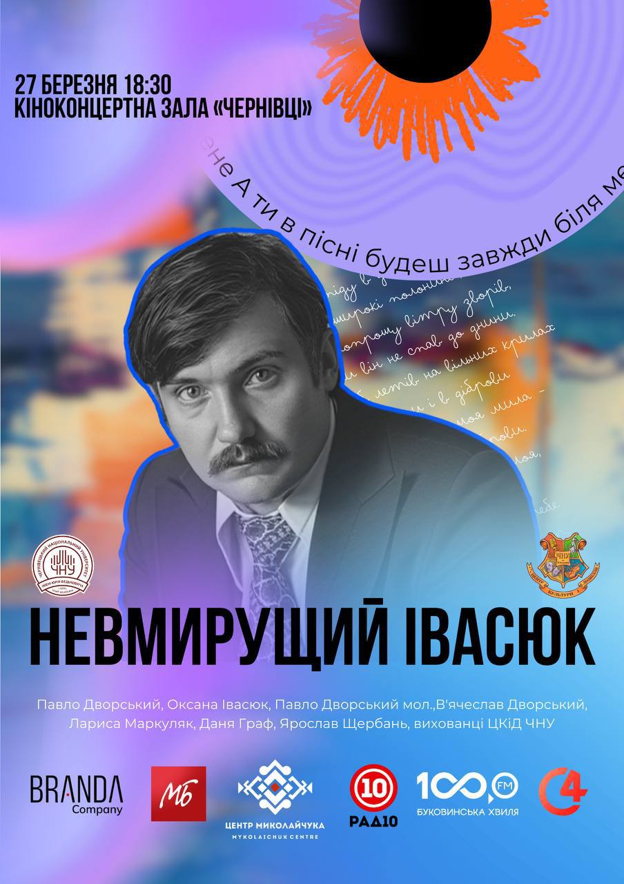 У Чернівцях проведуть благодійний концерт на честь Володимира Івасюка. Захід відбудеться завтра, 27 березня, о 18:30, у Кіноконцертній залі «Чернівці».
