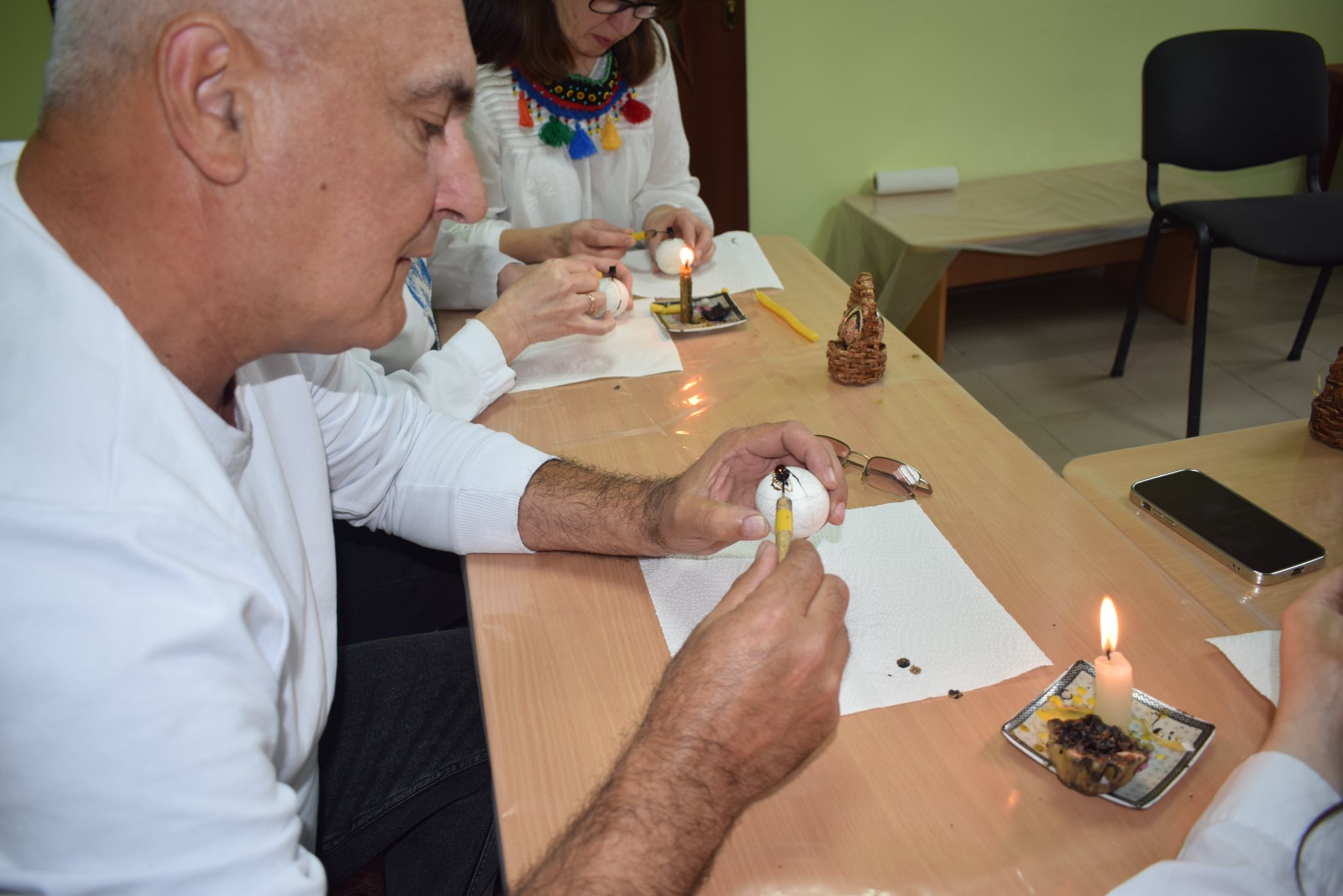 Педагоги взялися за особливу місію – розпис писанок. Кожна з них стала не просто символом свята, а справжнім витвором мистецтва, у який вкладено тепло рук, щирість душі та любов до рідного краю. Ці писанки – як маленькі послання миру, віри та надії.