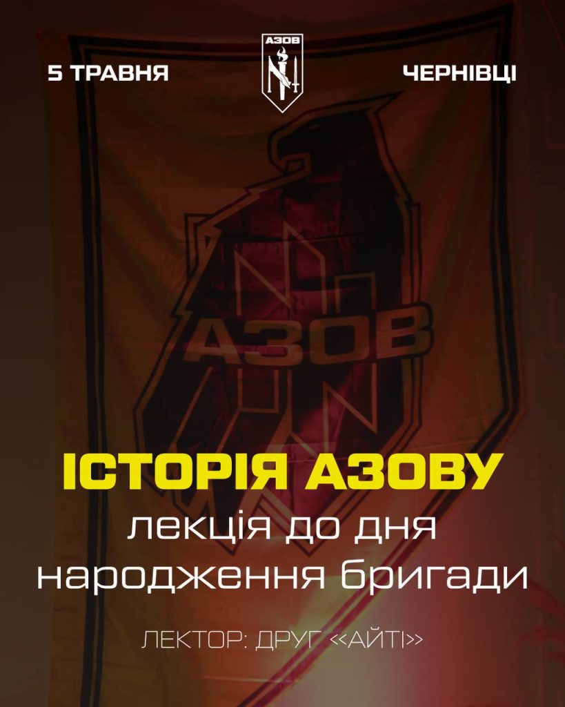 5 травня в Чернівцях відбудеться лекція «Історія Азову», присвячена бойовому шляху одного з підрозділів сучасної української армії.