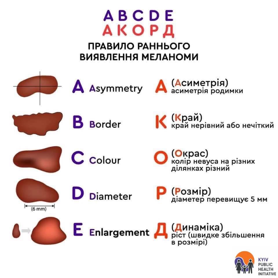 - регулярно оглядайте шкіру та своєчасно звертайтесь до лікаря при будь-яких змінах.