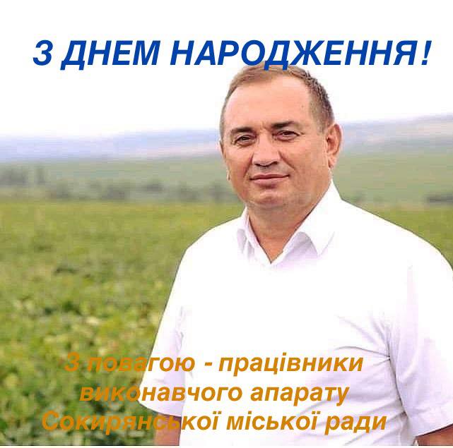Сокирянська міська рада, виконавчий комітет, працівники виконавчого апарату вітають з днем народження міського голову Василя Васильовича КОЗАКА