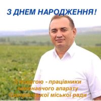 Щиро вітаємо Вас з Днем народження! Прийміть найщиріші побажання міцного здоров’я, родинного затишку, добробуту та щедрої долі. Нехай кожен день приносить Вам нові сили, натхнення та радість від реалізації добрих справ на благо нашої громади.