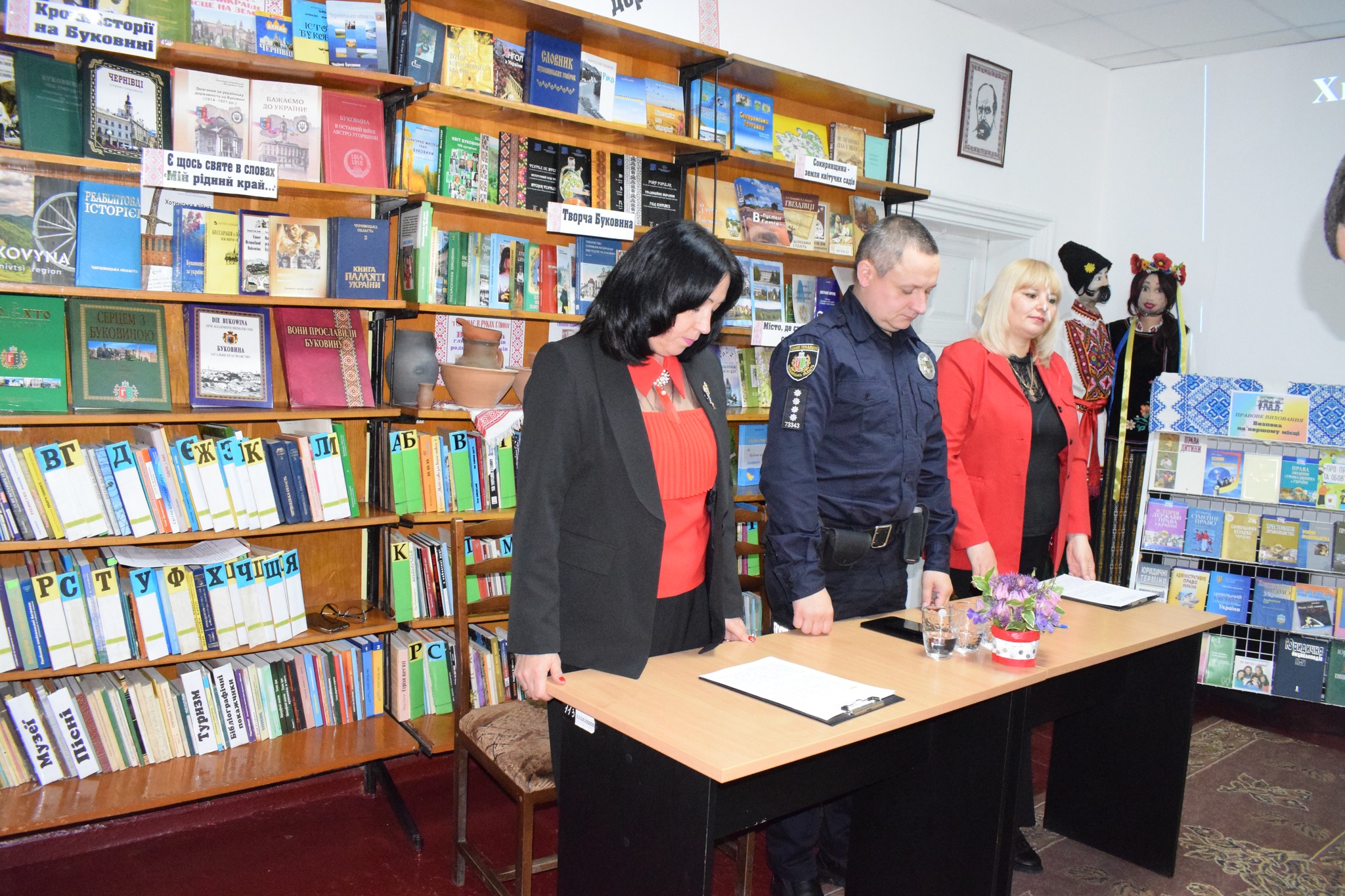 З нагоди відзначення Дня поліцейського офіцера громади, в Сокирянській філії КЗ «Центр культурних послуг» «Публічна міська бібліотека» Сокирянської міської ради було проведено виховний захід під назвою «Безпека на першому місці».