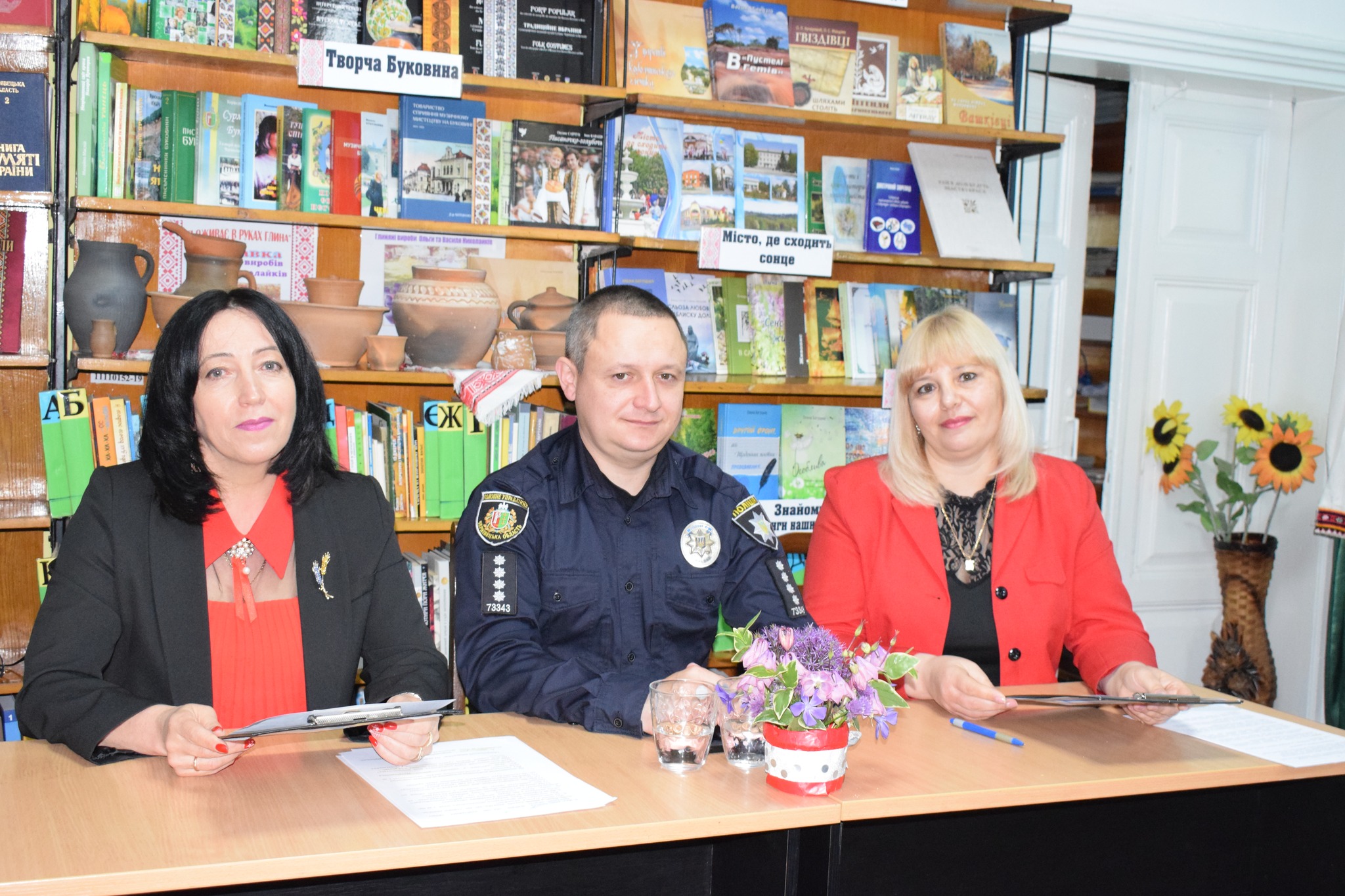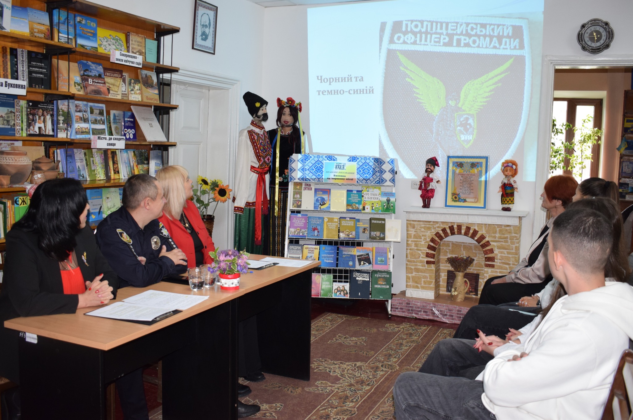 Учасниками зустрічі стали поліцейський офіцер громади Олег Томнюк, учні 10-А класу опорного закладу «Сокирянський ліцей №1» з класним керівником Валентиною Мельник та працівники бібліотеки.