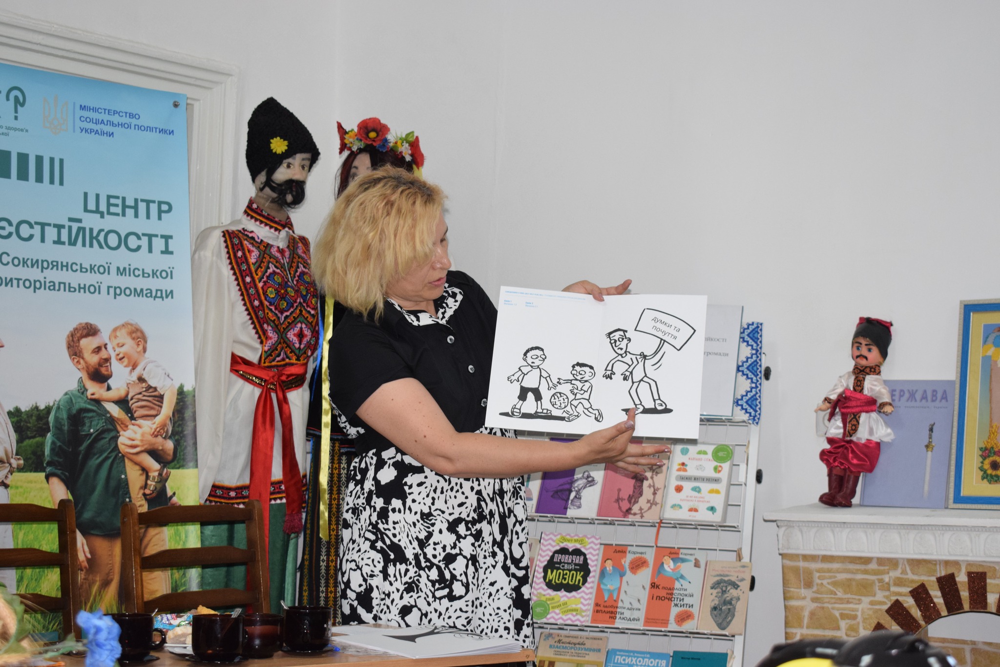 Змістовну та емоційно глибоку розмову з присутніми провела Наталія Джордж, фахівчиня Центру життєстійкості, який діє на базі «Центру надання соціальних послуг» Сокирянської міської ради. Вона розповіла, що таке ментальне здоров’я, чому воно є критично важливим під час війни, а також як кожна людина може впоратися з стресом, внутрішніми змінами та щоденними викликами.