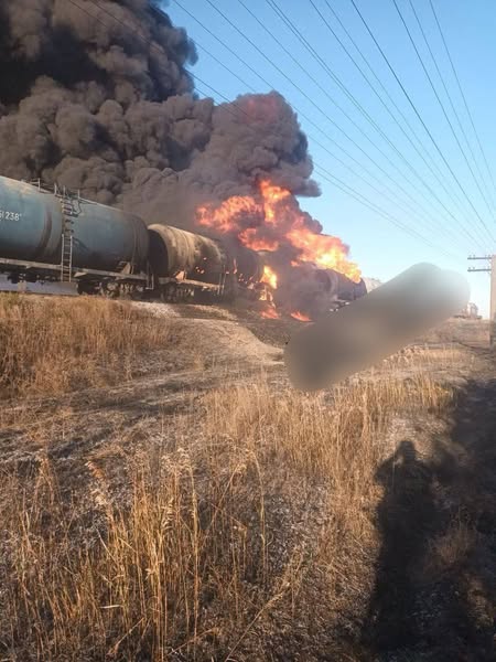 У результаті спільної операції Сили оборони зупинили рухомий склад між Урожайним і Токмаком, а оператори батальйону безпілотних систем «Роніни» 65-ї ОМБр за допомогою FPV-дронів уразили цистерни, підпаливши їх.