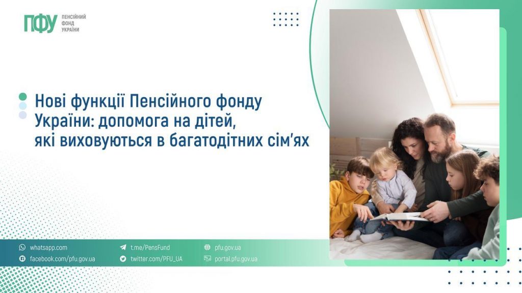 Нові функції Пенсійного фонду України: допомога на дітей, які виховуються в багатодітних сім’ях