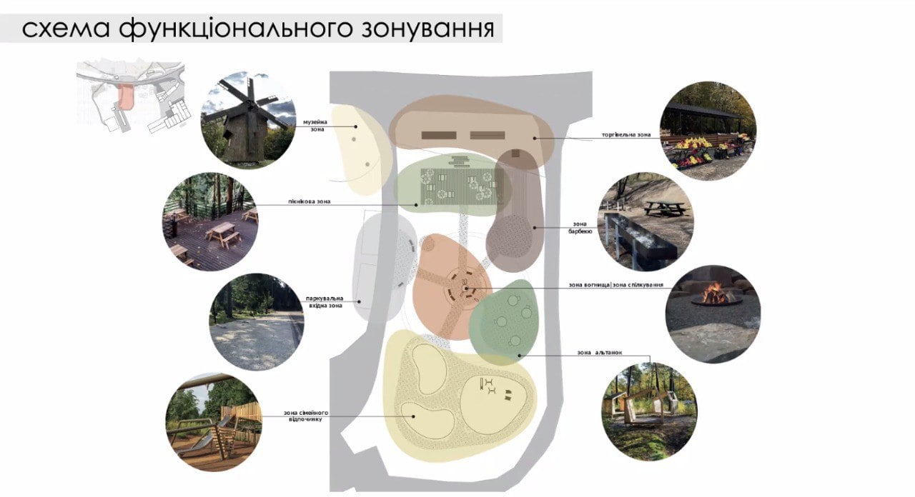 У межах проєкту планують облаштувати придорожню зону відпочинку, пішохідні доріжки та ігрові майданчики. Простір стане місцем дозвілля для дітей, дорослих та людей з інвалідністю.