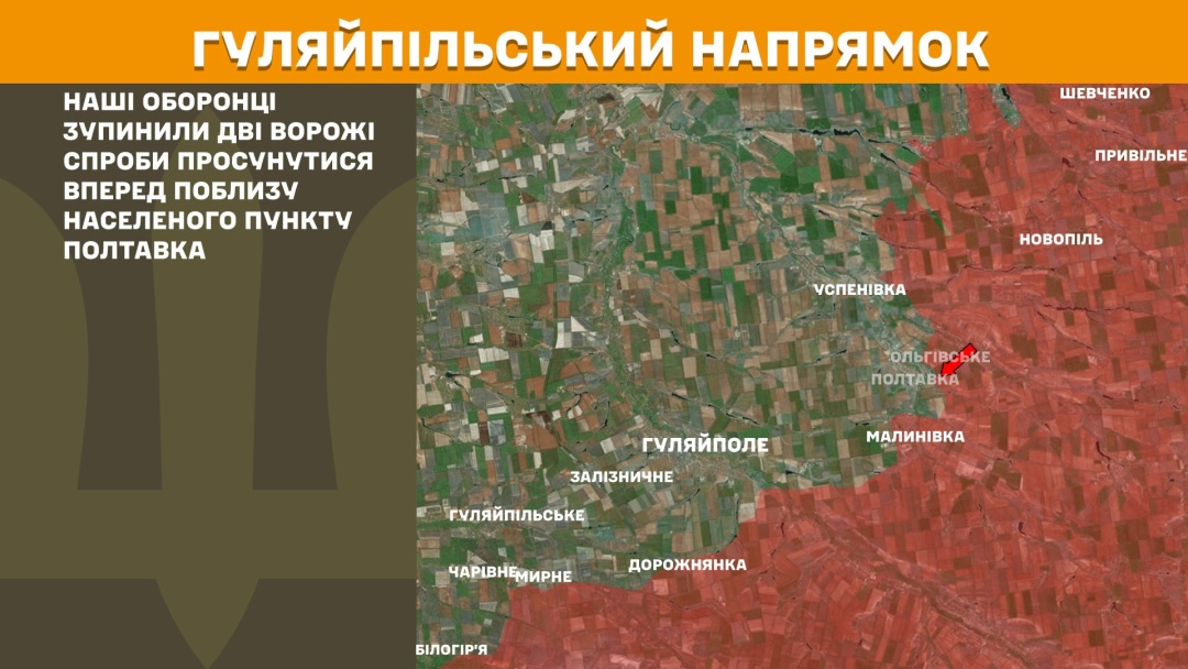 На Гуляйпільському напрямку оборонці зупинили дві російські спроби просунутися вперед поблизу населеного пункту Полтавка.