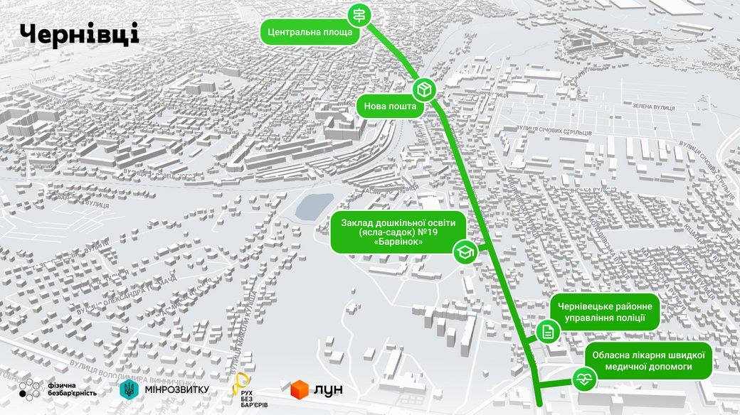 «Рух без бар’єрів» — флагманський проєкт Міністерства розвитку громад та територій втілюється в межах ініціативи першої леді Олени Зеленської «Без бар’єрів». У Чернівцях проєкт почали впроваджувати з червня 2025 року, коли місто долучилося до пілотного проєкту з реалізації Національної стратегії зі створення безбар’єрного простору до 2030 року.