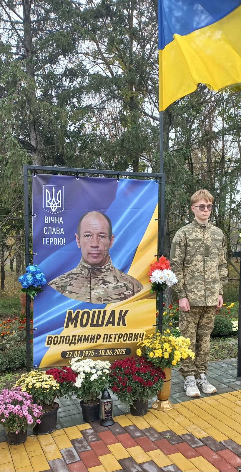 Поруч із цими Героями відкрито ще один банер — Володимиру Мошаку, який став на захист рідної землі та назавжди залишиться у пам’яті вдячних односельців.