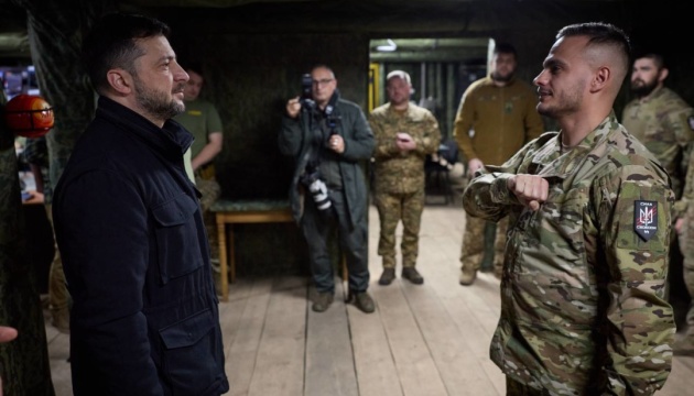 Президент Володимир Зеленський зустрівся з воїнами 4-ї бригади оперативного призначення Національної гвардії «Рубіж», які разом із суміжними підрозділами тримають оборону на Добропільському напрямку.