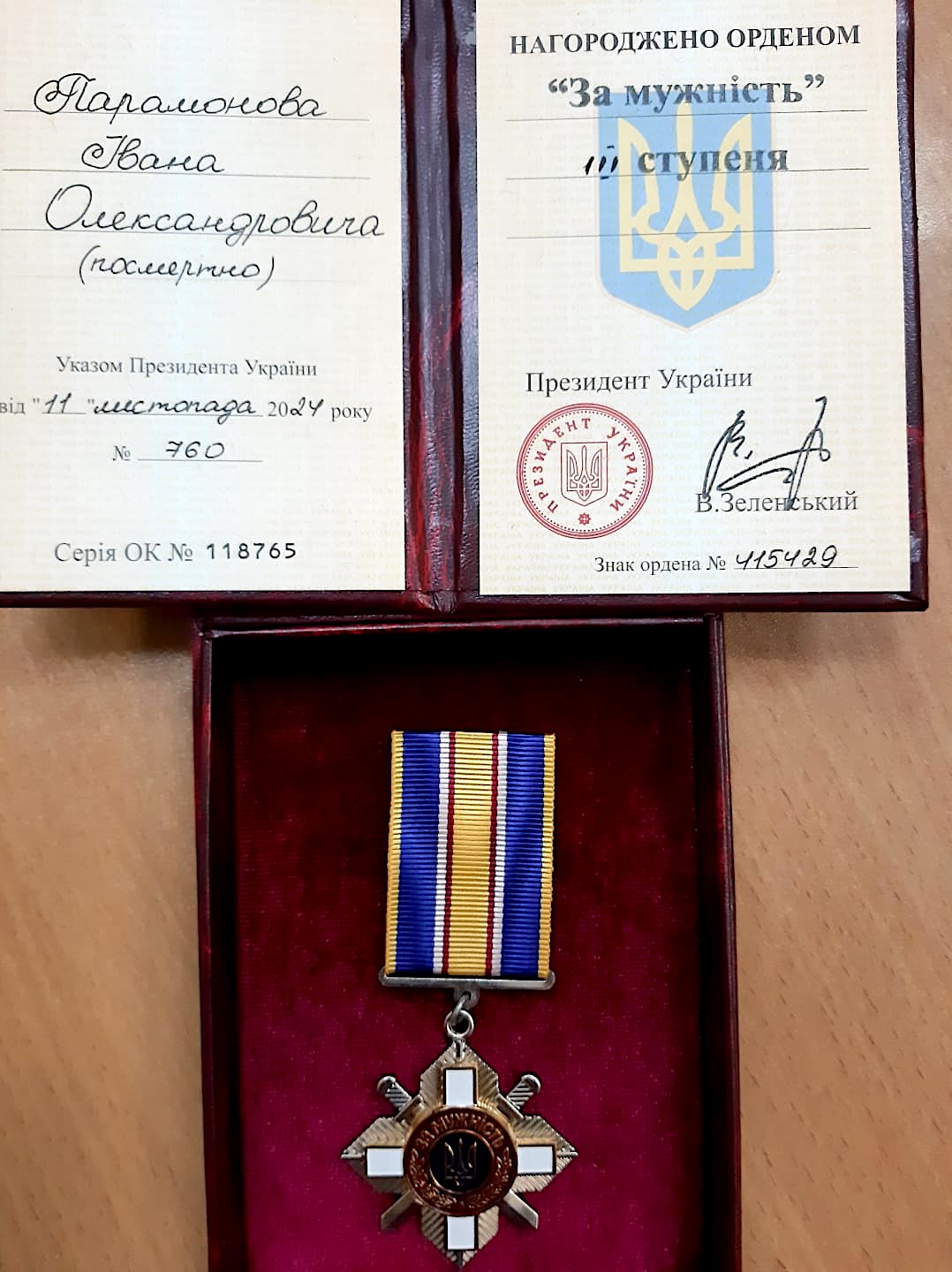 За мужність і самопожертву Указом Президента України від 11 листопада 2024 року №760 Івана Парамонова нагороджено орденом «За мужність» III ступеня (посмертно).