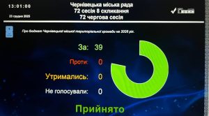 Депутати Чернівецької міської ради під час засідання сесії 23 грудня підтримали проєкт бюджету територіальної громади на 2026 рік. За документ проголосували 39 депутатів. Бюджет громади на наступний рік зріс на понад 16% у порівнянні з 2025 роком.