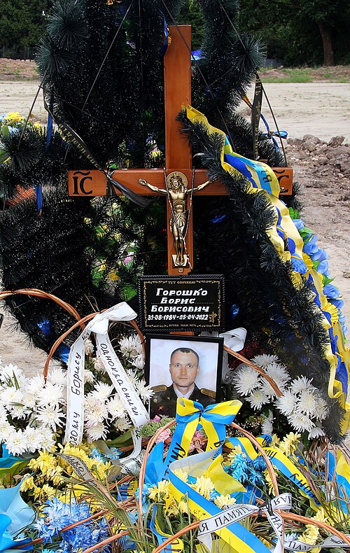21 липня 2023 року Бориса Горошка перепоховали на Полі почесних поховань Личаківського кладовища у Львові. Церемонія прощання відбулась у середмісті Львова, у гарнізонному храмі Петра і Павла. У захисника залишилися дружина, донька, мати, брат та сестра.