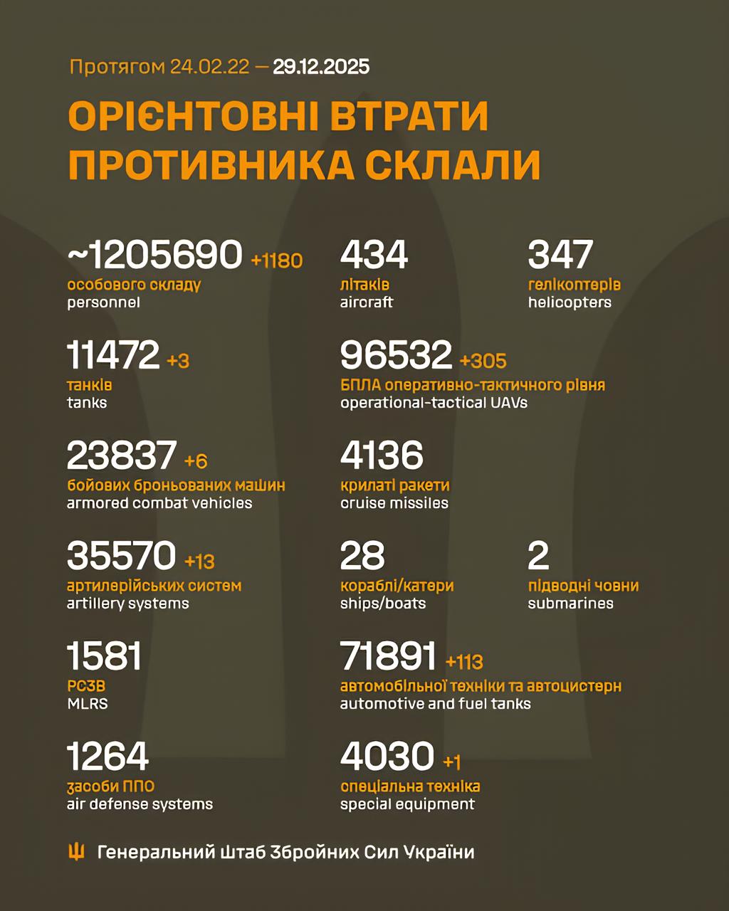 Ми зібрали для вас інформацію про тисяча чотириста п’ятий день Великої війни: чим жили Україна та українці 29 грудня 2025 року.