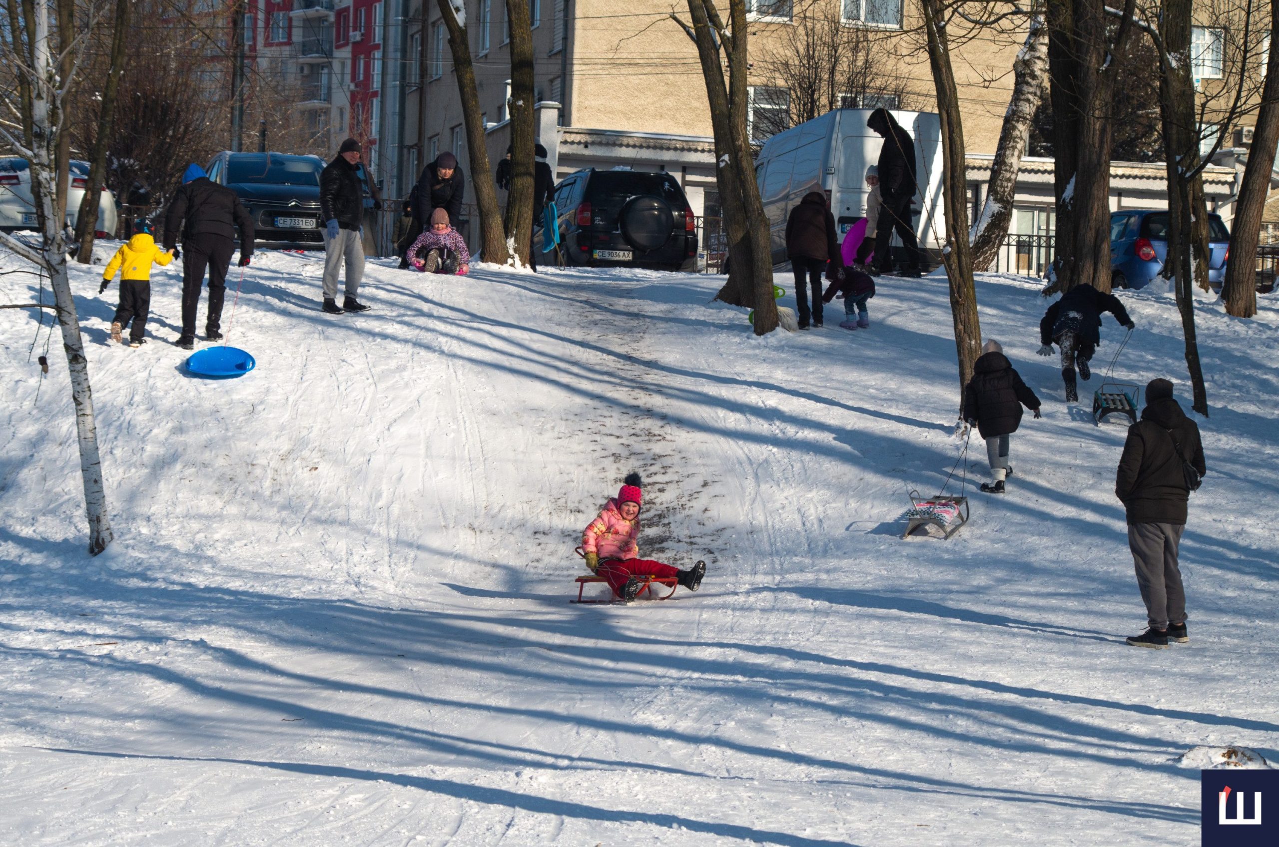 Попри блекаути і чималі морози чернівчани не засмучуються і не нудьгують, а вибираються з дітьми до парку. Фотокореспондент «Шпальти» Тарас Піц побачив через фотокамеру, як діти з дорослими у парку «Жовтневому» катаються на санчатах та сноутюбах, рибалки на замерзлому озері ловлять рибу, а пташки залюбки ласують насінням з годівничок, розвішаних на деревах добродіями.