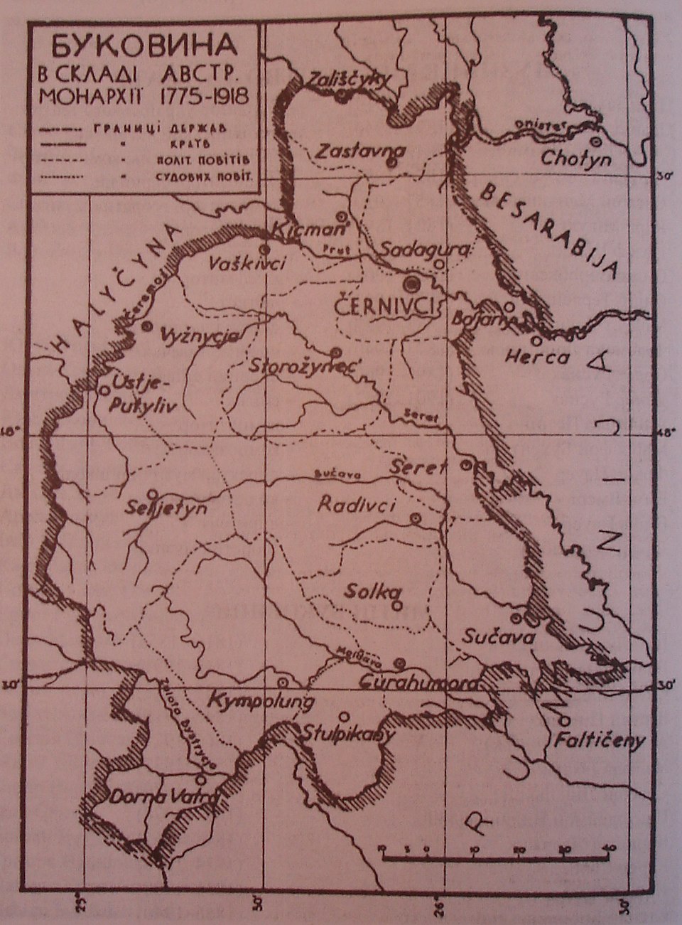 Мапа Буковини австрійського періоду / Марія Никирса, Чернівці. Документальні нариси з історії вулиць і площ