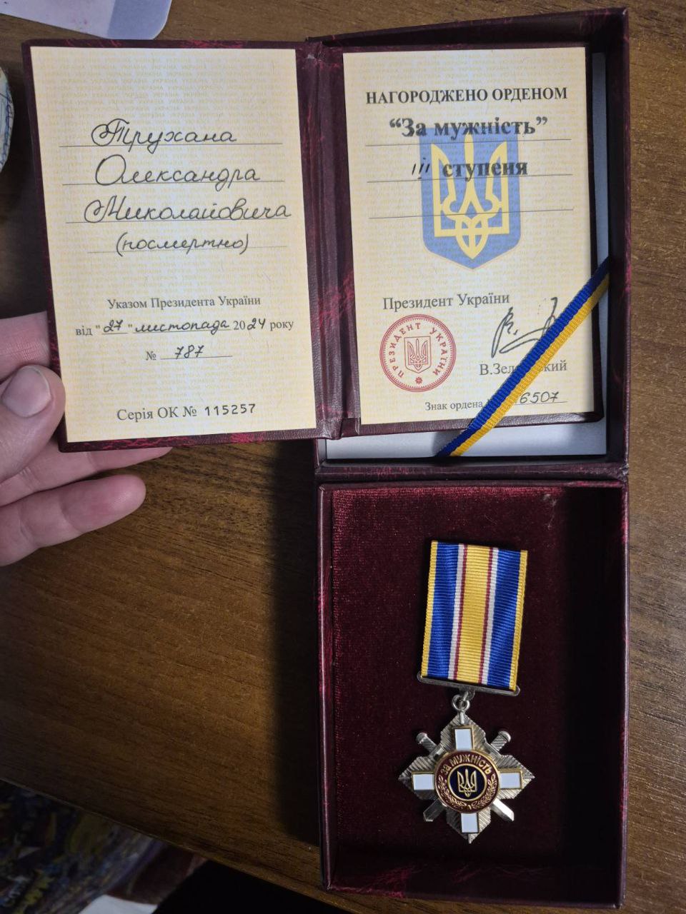 Така увага до простого сільського хлопця, який одним із перших на початку широкомасштабного вторгнення став на захист Батьківщини, не залишилася непоміченою. 27 листопада 2024 року за особисту мужність, виявлену у захисті державного суверенітету та територіальної цілісності України, самовіддане виконання військового обов’язку Указом Президента України №787/2024 солдат Трухан Олександр Миколайович був нагороджений орденом «За мужність» ІІІ ступеня (посмертно).