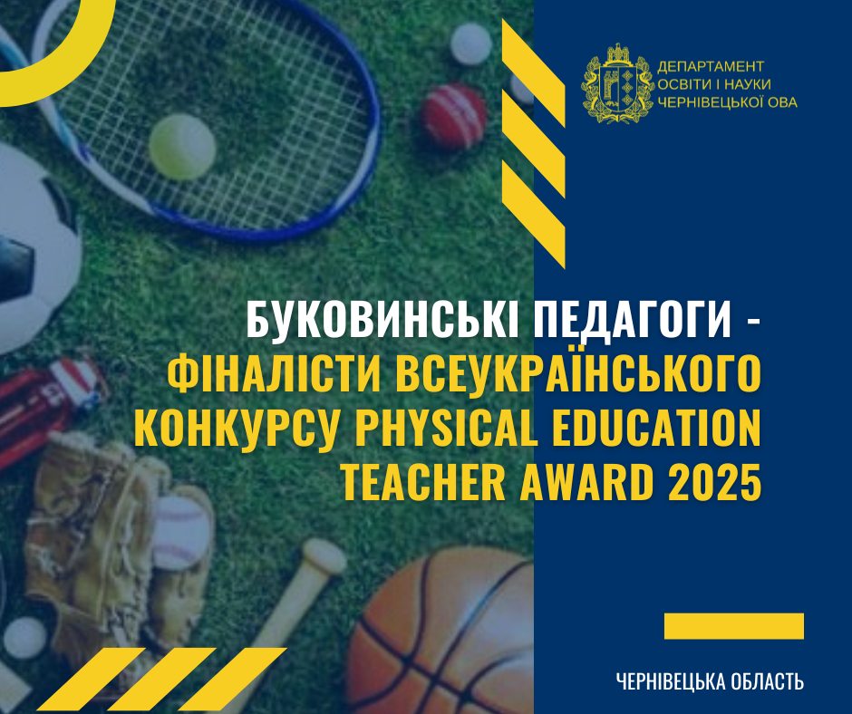Двоє буковинських педагогів потрапили в фінал всеукраїнського конкурсу для вчителів фізичної культури закладів загальної середньої освіти (Physical Education Teacher Award 2025). Про це написали на офіційній фейсбук-сторінці Департаменту освіти і науки Чернівецької обласної військової адміністрації.