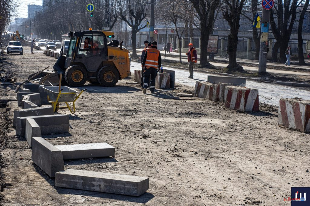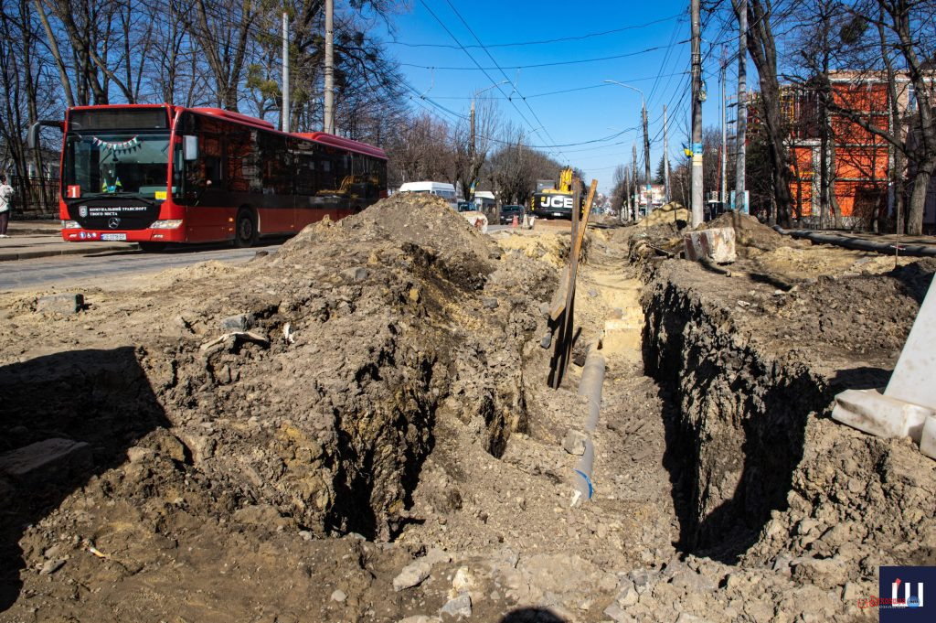 Паралельно тривають роботи з облаштування дороги. Уже підготували основу та заасфальтували 153 метри проїзної частини. На ділянці проклали 18 метрів газової труби, встановили три опори для світлофорів та 11 опор контактної мережі — це стовпи, на яких тримаються дроти для електротранспорту.