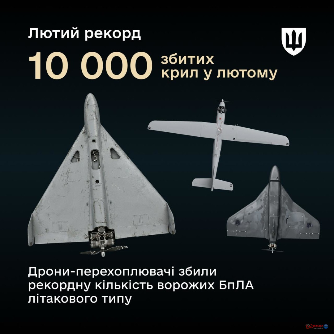 У лютому Сили оборони України збили дронами-перехоплювачами більш як 10 тисяч російських безпілотників літакового типу.