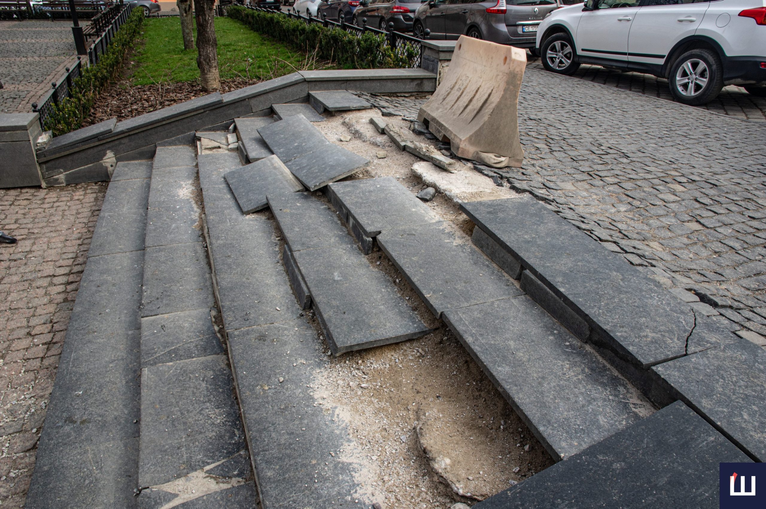 У центрі Чернівців, на площі Філармонії, майже повністю зруйновані сходи