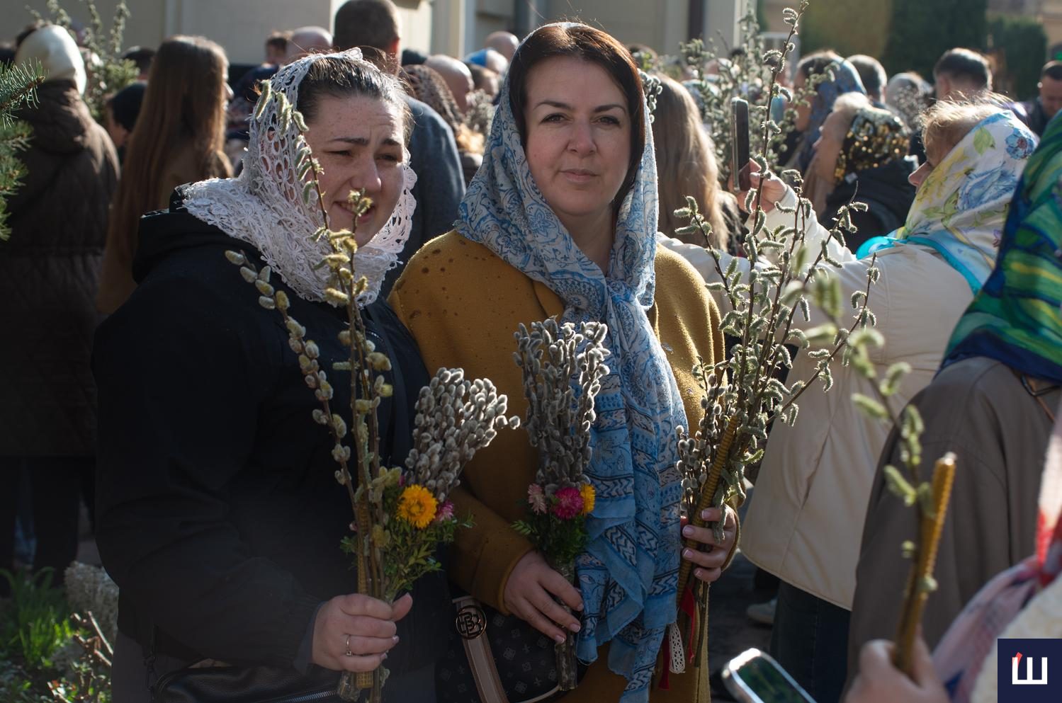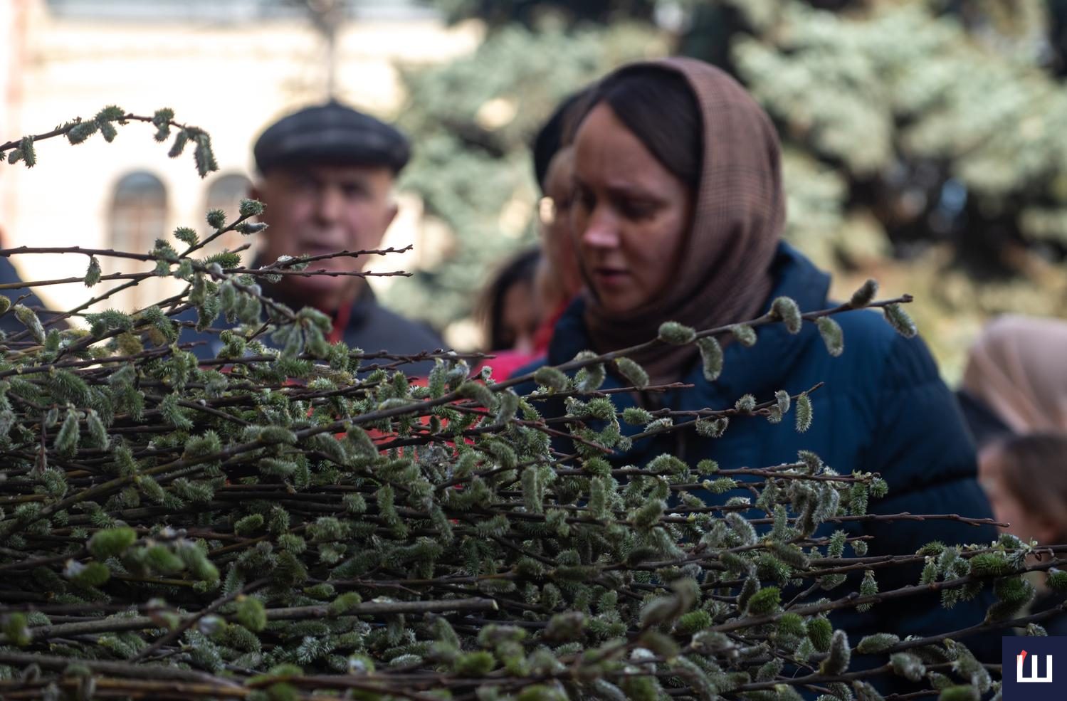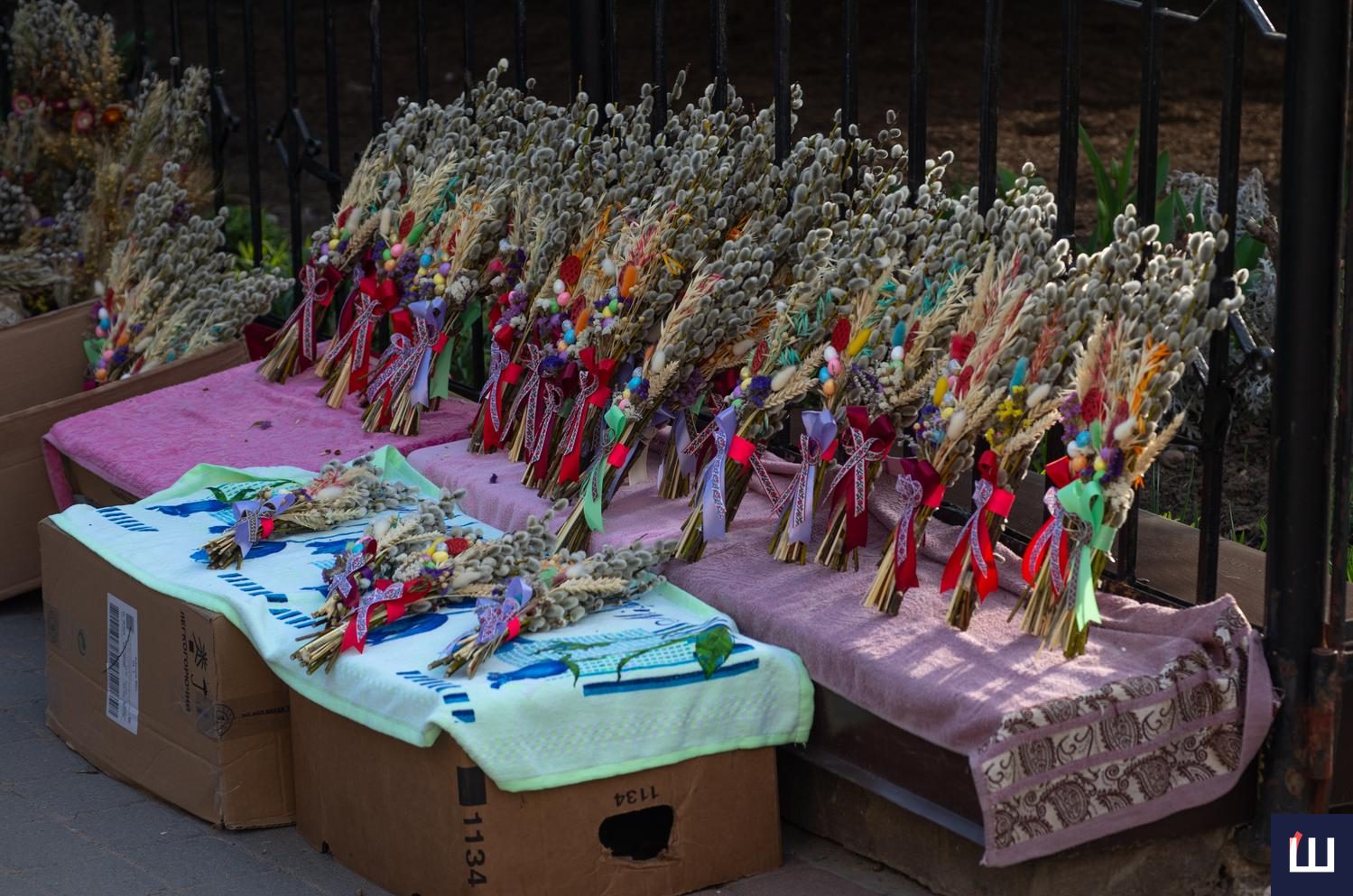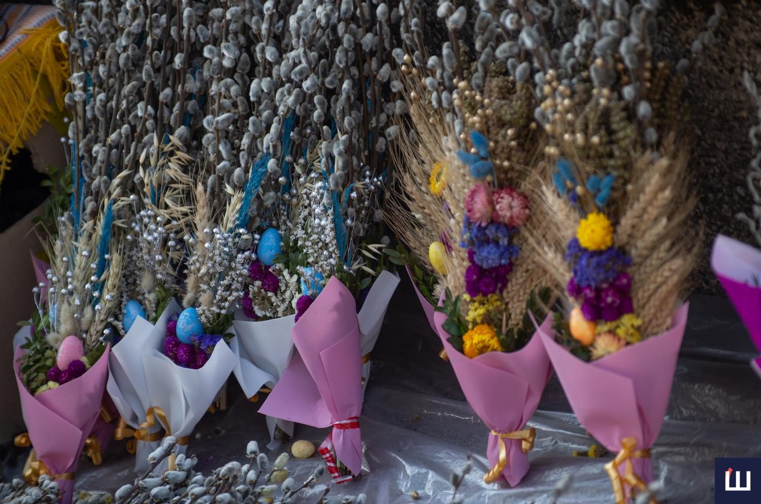 Продавали традиційні гілочки з сірими котиками, молоді пагони з зелено-жовтими суцвіттями та ошатно прибрані букети, з святковими писанками та колоссям.