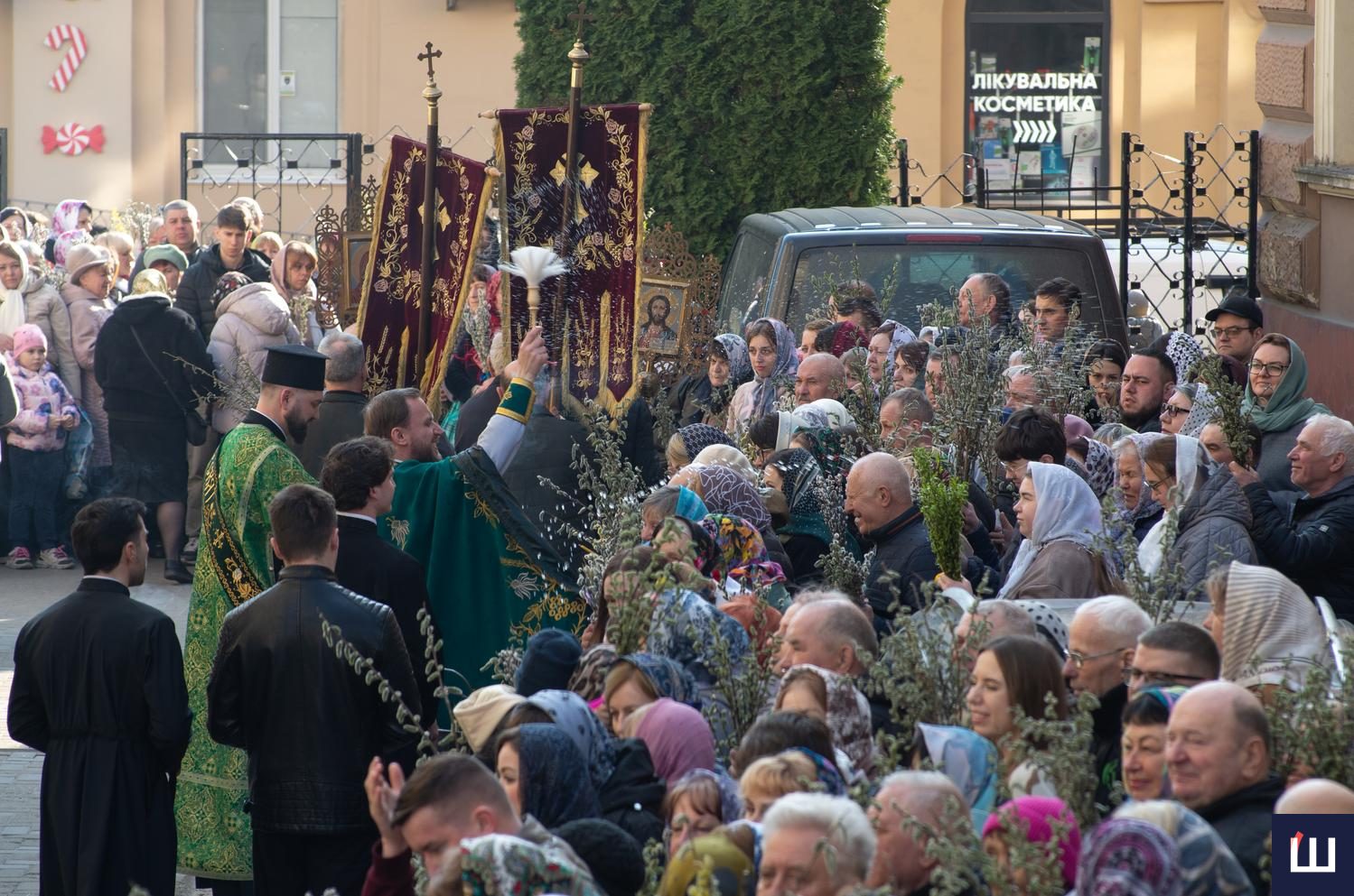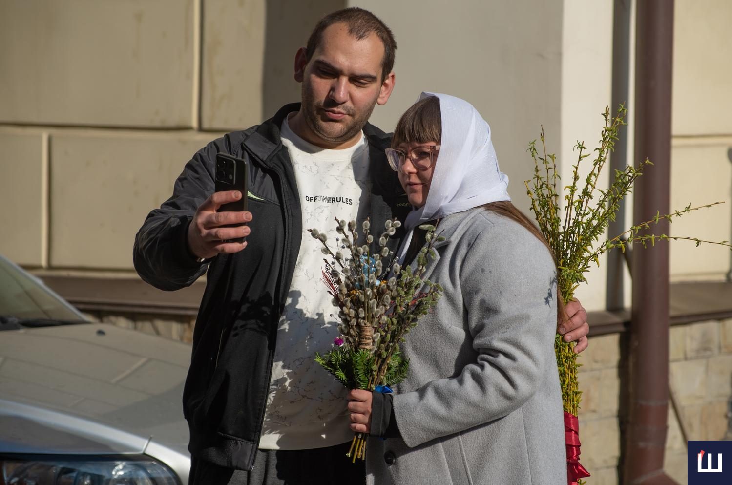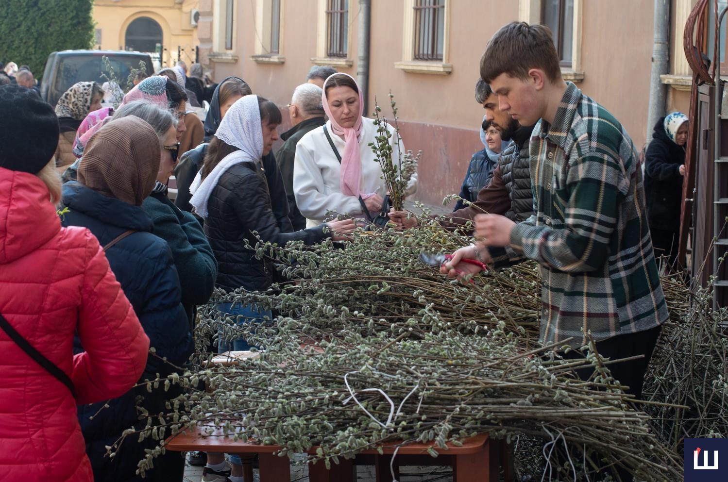 Ті, хто не встиг вчора придбати шутку, змогли купити її сьогодні. Від ранку на вулиці Ольги Кобилянської, на обочині Руської, біля храмів, тривала торгівля вербовими галузками.