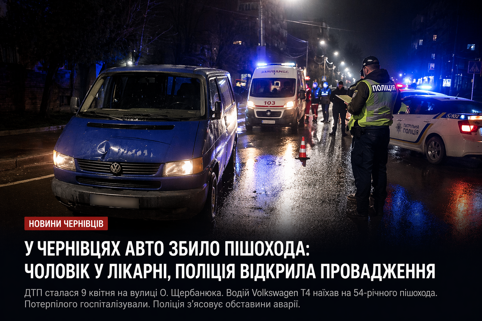 У Чернівцях на вулиці О. Щербанюка сталася дорожньо-транспортна пригода, внаслідок якої постраждав пішохід. Інцидент трапився ввечері 9 квітня. На місці одразу працювали правоохоронці та медики.