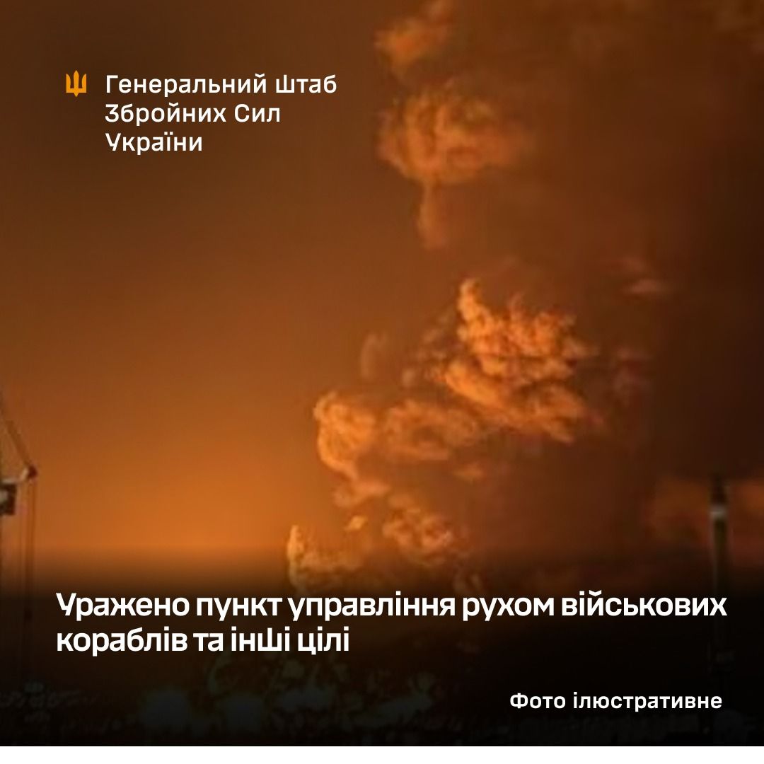 Зазначається, що 21 квітня та в ніч на 22 квітня українські оборонці уразили пункт управління рухом військових кораблів у Криму, а також ще низку важливих об'єктів ворога, зокрема: