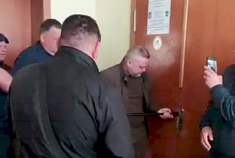 У Кіцмані ексмер Сергій Булега з ломом повертався до кабінету після рішення суду (відео)